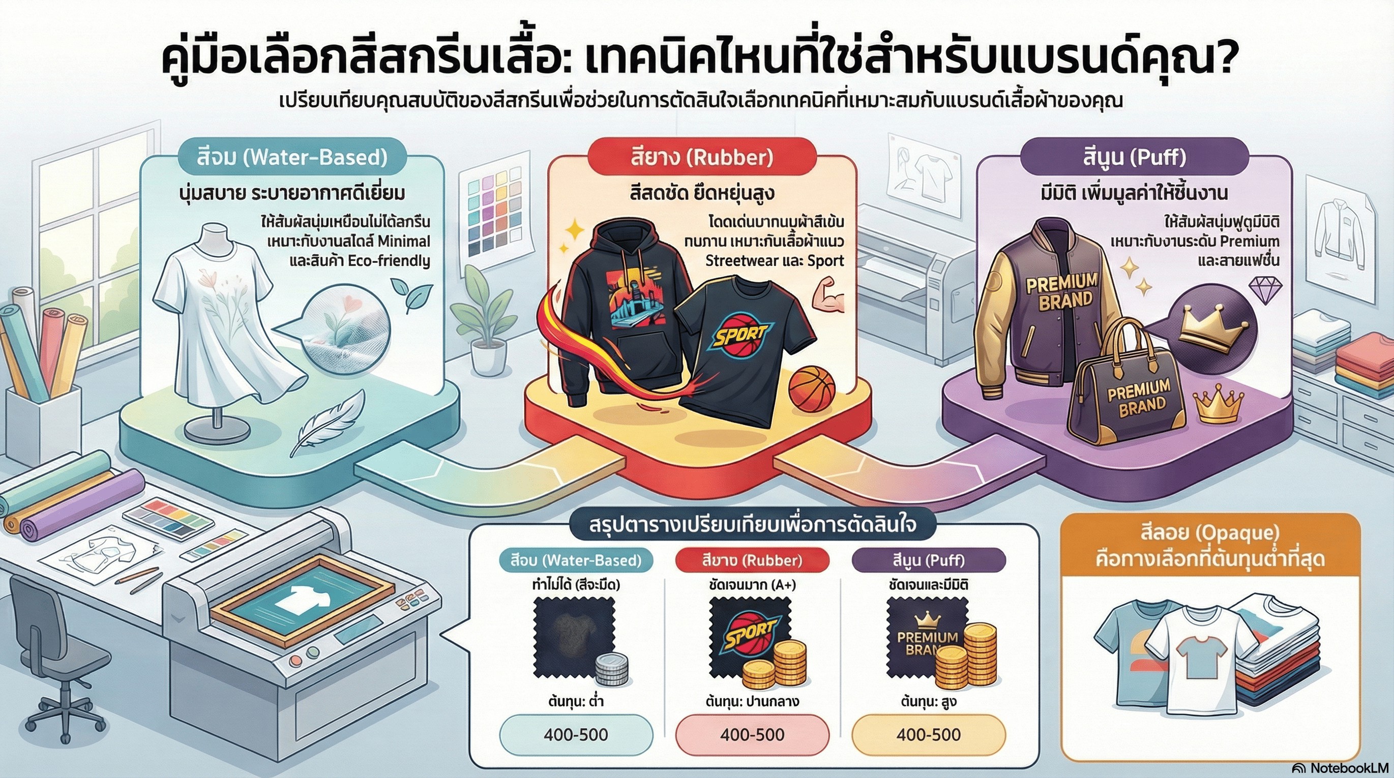 คัมภีร์การเลือกสีสกรีนผ้า: เจาะลึก 4 นวัตกรรมสีเพื่อสร้างมูลค่าเพิ่มให้แบรนด์เสื้อผ้า
